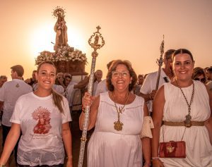 Salud Fernández señala que “es un día en el que Punta Umbría se une, pero también vienen muchísimos devotos de fuera, carmelitas de toda la provincia y turistas que aprovechan su estancia para ver a la Virgen en la calle”. Según explica, cada vez es más habitual que las personas que visitan el municipio en estas fechas, se interesen por las fiestas. “Suelen escribirnos por correo electrónico o redes sociales, por el día que sale la Virgen, a qué hora empieza la procesión o información sobre los actos. Eso dice mucho del interés que despiertan las fiestas patronales”, relata.
