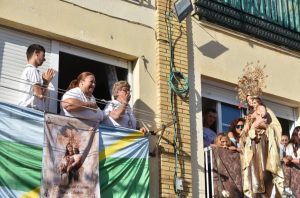 Uno de los actos que más emociona al presidente es la petalada organizada por la asociación. «Las flores que la gente trajo las despetalamos y se las lanzamos a la Virgen. Es un momento muy mágico. Pedimos permiso a la hermandad, y lo hacemos con mucho respeto«. Además, reconoce con alegría que «este año muchos vecinos han traído flores por su cuenta, eso dice mucho de la implicación y el cariño del barrio«.