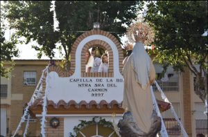 Uno de los momentos más esperados del recorrido fue su llegada a la Barriada del Carmen. No solo por tratarse del corazón geográfico y sentimental del municipio, con profundas raíces marineras, sino porque sus calles venían de celebrar con entusiasmo la tradicional verbena. Durante los días previos, los vecinos llenaron de color, música y vida cada rincón del barrio, anticipando con fervor la visita de su patrona.