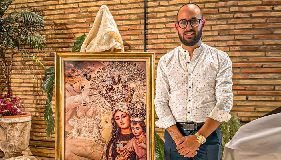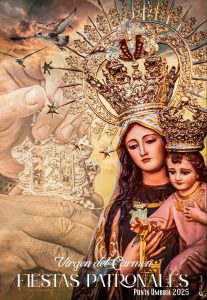 Y es que Juanjo ha querido rendir homenaje no solo a la patrona de la localidad, sino también a alguien muy importante en su vida y en la de su familia. Las imágenes que eligió para la creación del cartel cobran mucho significado para él. “En primer plano hay una imagen de la Virgen del Carmen de la procesión del 16 de julio de 2024 y, en un segundo plano, aparece el llamador del paso sujetado por unas manos. Ese detalle encierra una historia íntima para mí, ya que ese llamador lo donó mi abuelo, Juan Rodríguez Cinta, ‘el Vivo’, en agosto de 2017, poco antes de fallecer. Él era marinero, y esas manos podrían ser perfectamente las suyas. Era mi primer cartel del Carmen y quería que tuviese algo que nunca pudiera olvidar. Es un homenaje a él”.