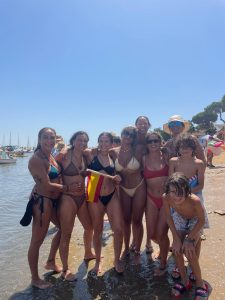 Los primeros en felicitarla en la orilla tras su exitosa participación, fueron sus padres Rafael y Angélica, así como el resto de familia y amigos. En la zona de la ría, muchos celebraron con Clara este genuino logro en las fiestas al ritmo de la música de la charanga.