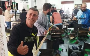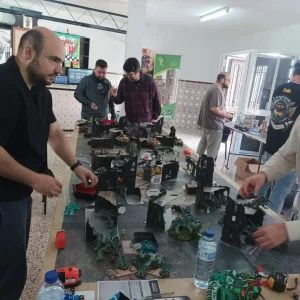 El crecimiento ha traído necesidades muy concretas. “Constituirnos como asociación es clave”, explica. “Cada vez somos más, necesitamos más espacio y, asociarnos, consideramos que es la forma de conseguirlo”. La logística para organizar partidas no es cualquier cosa. “Cada mesa ocupa unos tres metros cuadrados entre tablero y hueco para jugar”, recuerda. En las tardes fuertes se montan varias a la vez, con tapetes, escenografía, estanterías para transportar ejércitos y un rincón de pintura. Sin un local estable, todo es cargar, descargar y repartir material por casas particulares.