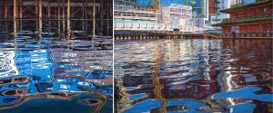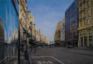 Sus cuadros de paisajes urbanos, naturalezas, retratos, aguas y reflejos están siempre impregnados de esa sensibilidad hacia lo cotidiano. “El agua y sus reflejos es un tema que me inspira muchísimo y además me conecta con mi obra de juventud, vivida junto al río Guadiana y que luego he buscado en otros lugares como Venecia, Estambul o Ámsterdam. Es parte importante de mi temática actual”.