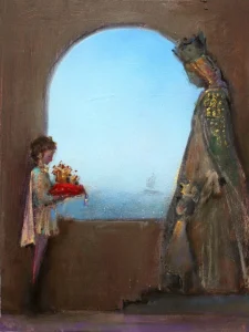 En Lepe eso se ve con nitidez. La Virgen de la Bella aparece entretejida con episodios, memorias y criaturas que explican su arraigo. Hay obras donde el Niño “reparte dones” con un pequeño carro, como metáfora de la Providencia y otras en que la leyenda y la historia se cruzan con naturalidad pero con la devoción intacta.