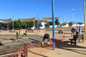Con una superficie de 10.500 metros cuadrados, el céntrico Parque de la Solidaridad está siendo objeto de una profunda remodelación. Entre las mejoras destacan la instalación de pavimento de seguridad, nuevos elementos de juego como pasarelas, balancines, toboganes y columpios, además de un rediseño global que reforzará su papel como gran pulmón verde de Aljaraque.