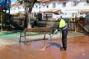La Concejalía de Infraestructuras también ha actuado en el Parque Nuestra Señora de los Remedios, donde se ha realizado un plan integral de limpieza, baldeo, jardinería y acondicionamiento de instalaciones. Se han limpiado palmeras, cortado el césped, desbrozado y eliminado arbustos, garantizando un espacio más seguro y agradable para los niños y familias que lo disfrutan a diario.