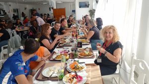 Ese mismo espíritu anfitrión recorrió la XXIX edición de la Vuelta. La salida se realizó desde el recinto ferial hacia la primera parada en La Rábida. Allí se contempló el jardín botánico y el Muelle de las Carabelas y se abrió camino a Mazagón, ofreciendo un itinerario turístico diseñado para presumir de territorio. “El objetivo es que la gente conozca nuestro pueblo y su entorno, que venga, eche el día con nosotros y se vaya contenta”, resume Juan Carlos. La logística no es fácil y es necesario pedir permisos, coordinar con Protección Civil, Policía Local y Guardia Civil, garantizar la seguridad en ruta y organizar dos avituallamientos con bocadillos y refrescos. “En la comida llegamos a reunir entre 200 y 300 personas y sorteamos unos 150 regalos”, detalla. Jamones, fines de semana de hotel y obsequios que aportan empresas locales y amigos patrocinadores son uno de los grandes atractivos de la comida. “Nunca hemos querido ganar dinero con la Vuelta. Lo que entra vuelve a los participantes en forma de premios y organización”.