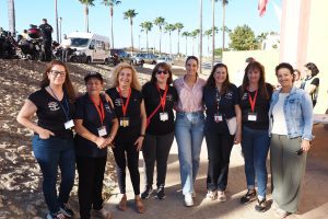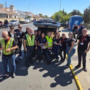 La otra mitad del motor la pone María del Carmen, tesorera y alma logística. “A nosotras nos toca la trastienda”, sonríe. “Papeles, seguros, permisos, hoteles, restaurantes, que todo esté reservado porque vamos en grupos grandes”. La suya no es una ayuda puntual, sino dirección y coordinación. “Las mujeres tiran mucho del Rum Rum. Organizamos, buscamos patrocinio, hablamos con instituciones. En febrero, por ejemplo, en el Romerito de La Rábida montamos convivencia y en Navidad, comida del club. No es solo moto, es vida asociativa”.