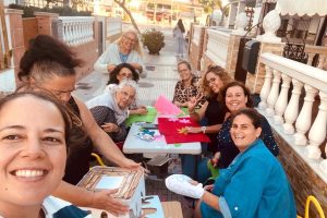 “Hemos trabajado cinco o seis personas cada tarde, aunque somos muchos más en total”, explica Macu. “Aquí hay muchas personas mayores y muchas vienen… se sientan, miran, opinan y disfrutan. Es una forma de hacer vecindad. Y las jóvenes trabajamos”.