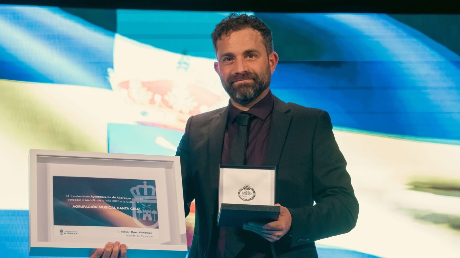 Por su contribución a la cultura local se entregó la Medalla de Oro de la Villa a la Agrupación Musical Santa Cruz de Huelva. Israel Pereira, director musical de la agrupación destacó el profundo vínculo histórico que une a la formación con el municipio. “Es el mayor galardón que hemos recibido a nivel oficial en los 25 años de historia de la banda”, afirma.